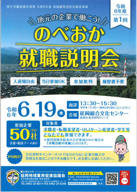 令和6年度第1回のべおか就職説明会に参加します!